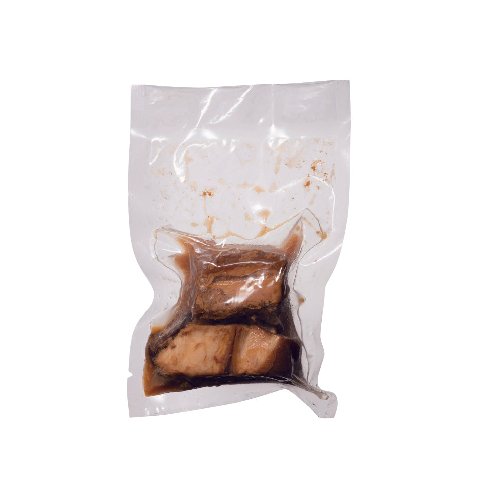 長時間煮込むと三枚肉の肉部分が固くなってしまうことから、肉も脂の部分も柔らかくなるように圧力鍋で仕上げられています。煮汁に使用されている味噌は、久米島味噌。ほのかな甘さが特徴で、食材の味を損なわない味噌を厳選していった結果たどりついたこだわりの食材だそうです。隠し味に沖縄そばだしを使用した、上品な味わいになっています。