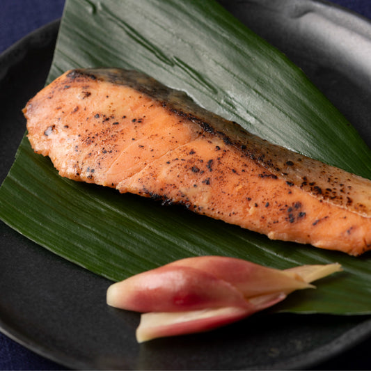西京味噌に3日間漬け込んだ厚切りの銀鮭の切り身に、甘みやうまみ成分がしみ込み、ふっくらと香ばしく焼きあがっています。丁寧に骨取りがされているため、食べやすいのも嬉しい。