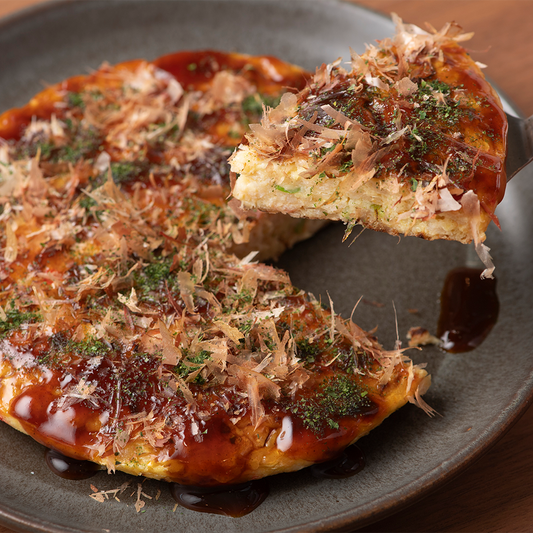 小麦粉よりも卵と山芋を多く使用したお好み焼きはふわふわな食感になっています。1枚ずつ丁寧に手焼きし、急速冷凍をすることで出来立ての美味しさを保っています。