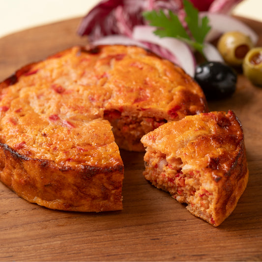 パプリカと自家製ベーコン、玉ねぎを低温でじっくり炒め、塩とトマトペーストで味付けをした卵に混ぜ、焼きあげています。しっとりとした食感で、特に白ワインとの相性は抜群です。