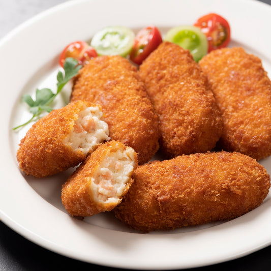 スモークサーモンの香りをまとったベシャメルソースが美味しい!燻製加工を得意とする王子サーモンが手掛けるコロッケは、洋食屋のコロッケとはまた違う味わいです。